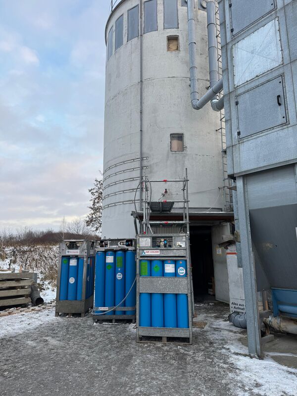 Über die folgenden beiden Tage und Nächte wurden engmaschig Temperaturkontrollen durchgeführt. Zusätzlich wurde die Einleitung des Stickstoffes überwacht. Am Folgetag konnte bereits eine Temperaturreduktion verzeichnet werden. Im Verlauf wurde das Silo kontrolliert leer gefahren, unter laufender Stickstoffinsufflation. Über die Drehleiter kontrollierte ein Trupp unter Atemschutz das Silo von oben. Hierbei konnte festgestellt werden, dass der Brand erstickt werden konnte.