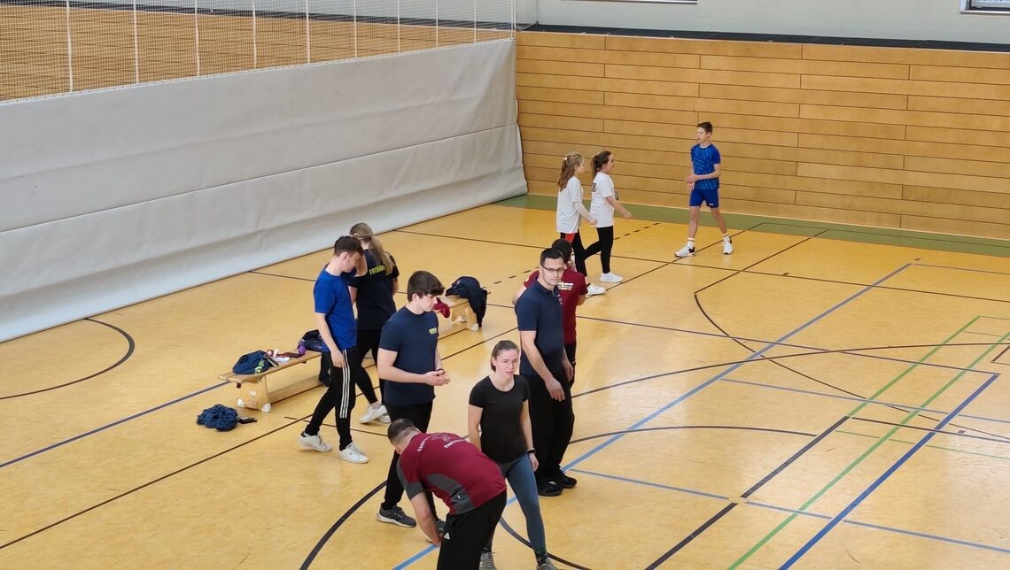 Der Vormittag stand ganz im Zeichen von Bewegung, Spaß und Teamgeist. Auf dem Basketballfeld wurde eifrig gedribbelt und geworfen, und schnell bildeten sich kleine Gruppen, die gegeneinander spielten. Besonders beliebt war das Völkerball-Turnier, bei dem die Teams mit viel Einsatz und Fairness um den Sieg kämpften. Daneben sorgte der Wackelturm für Spannung, denn jeder neue Stein konnte über Sieg oder wackelnden Zusammenbruch entscheiden. Auch das Eisschollen-Hüpfen entwickelte sich zu einem echten Highlight: Mit Geschick und ein wenig Mut balancierten die Kinder über die „Schollen“ und feuerten sich gegenseitig an.