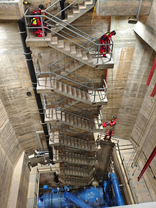 Den Höhepunkt bildete die Gruppenprüfung. Hier galt es, gemeinsam eine vollständige Seilstrecke aufzubauen, um zu einer verunfallten Person zu gelangen und diese anschließend sicher zu retten. Dabei waren Teamarbeit, Kommunikation und technisches Verständnis entscheidende Faktoren für den erfolgreichen Abschluss der Aufgabe.