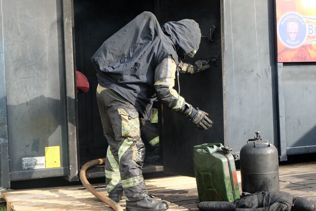 Insgesamt gab es zwei Stationen. Station 1 war die Rauchgasdurchzündung. Hierbei saßen alle im Brandcontainer und beobachteten das Brandverhalten, in Zusammenhang mit den entstehenden Rauchschichten bis hin zur Rauchgasdurchzündung.