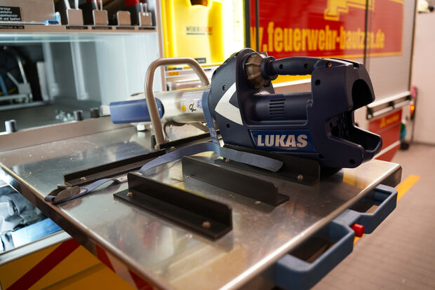 Ein hydraulischer Spreizer dient als Rettungsgerät, um bei Verkehrsunfällen eingeklemmte Menschen zügig aus den Unfallfahrzeugen befreien zu können.