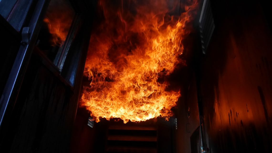 Per Knopfdruck herrschen in dem Container an die 300 grad-celsius, Flammen schlagen meterhoch über den Köpfen der Atemschutzgeräteträger hinweg und Rauch steigt aus allen Ecken hervor. Ein Ausbilder überwacht den Angriffstrupp im Inneren und steuert die Anlage.