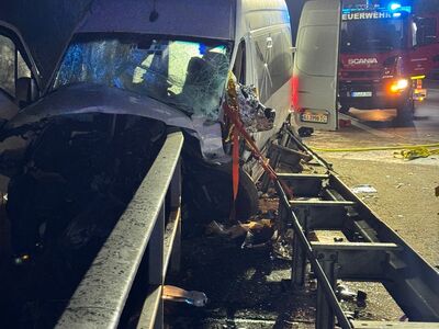 Zu einem schweren Verkehrsunfall kam es am frühen Morgen des ersten Weihnachtsfeiertages. Ein ukrainischer Kleinbus verunfallte auf der Autobahn und kam nach rechts von der Fahrbahn ab. Ein Brückengeländer spießte dabei in den Fahrgastraum ein.