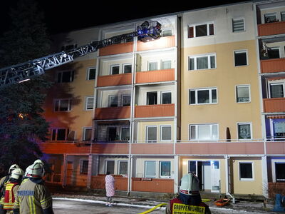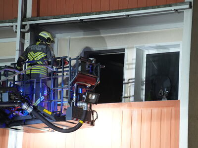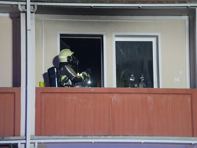 Beim Eintreffen der Einsatzkräfte bestätigte sich die Lage: In einer Wohnung war ein Brand ausgebrochen. Die Bewohnerin hatte sich auf den Balkon gerettet, da ihr der Fluchtweg über das Treppenhaus durch Rauch und Feuer versperrt war. Sie wurde umgehend mithilfe der Drehleiter vom Balkon gerettet.
